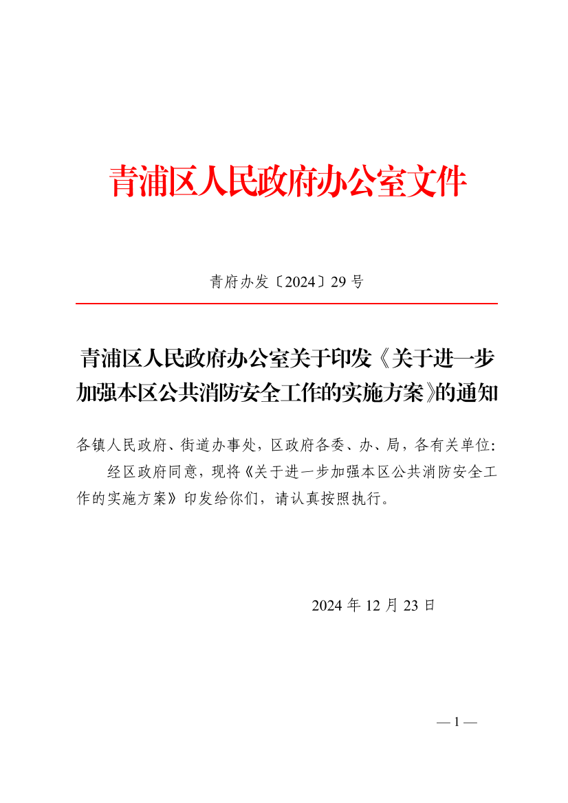 为长效防范化解消防安全重大风险,全力保障消防安全,根据《上海市人民政府办公厅关于进一步加强本市城市公共消防安全工作的意见》(沪府办规〔2024〕6号),现就进一步加强本区公共消防安全工作制定实施方案如下。