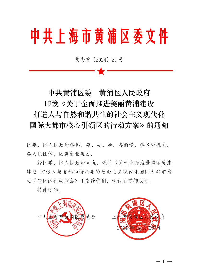 为全面推进美丽黄浦建设、打造人与自然和谐共生的社会主义现代化国际大都市核心引领区,提出如下行动方案。