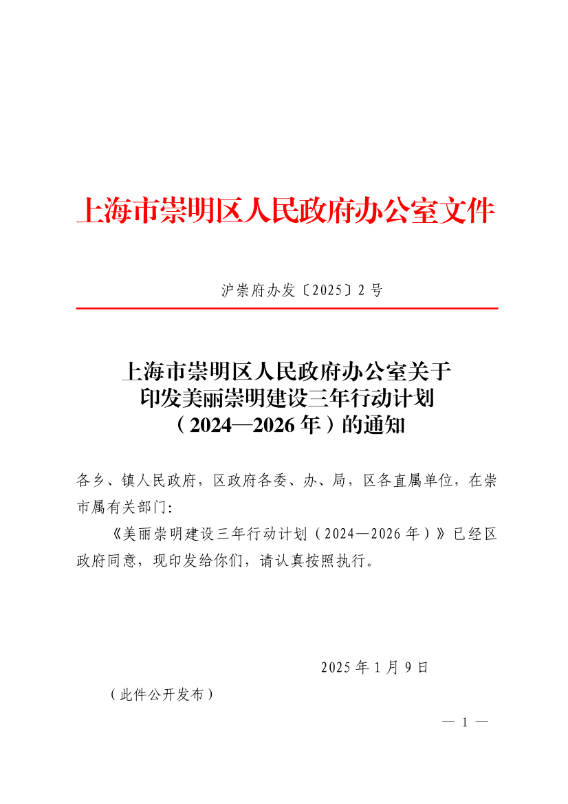 关于印发美丽崇明建设三年行动计划(2024—2026年)的通知