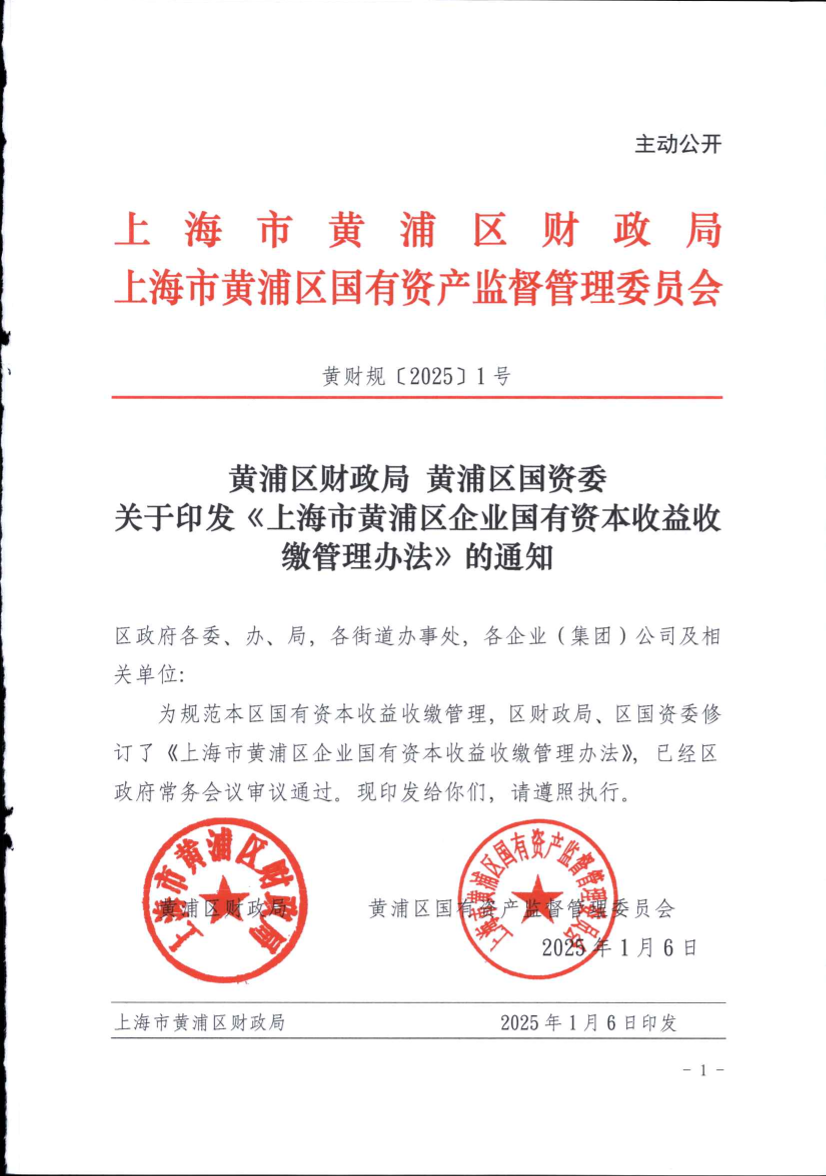 黄浦区财政局 黄浦区国资委关于印发《上海市黄浦区企业国有资本收益收缴管理办法》的通知