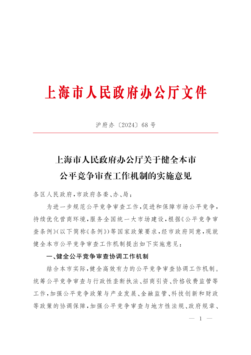 上海市人民政府办公厅关于健全本市公平竞争审查工作机制的实施意见