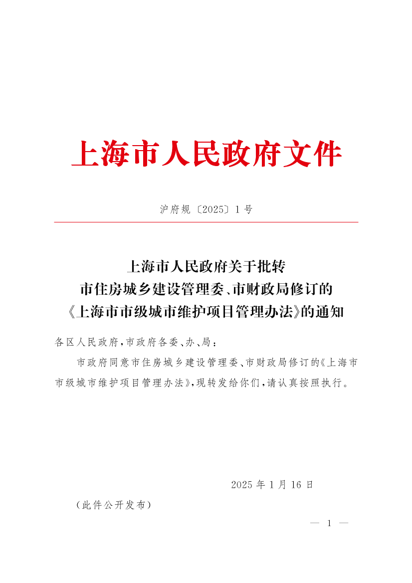 市政府同意市住房城乡建设管理委、市财政局修订的《上海市市级城市维护项目管理办法》,现转发给你们,请认真按照执行。