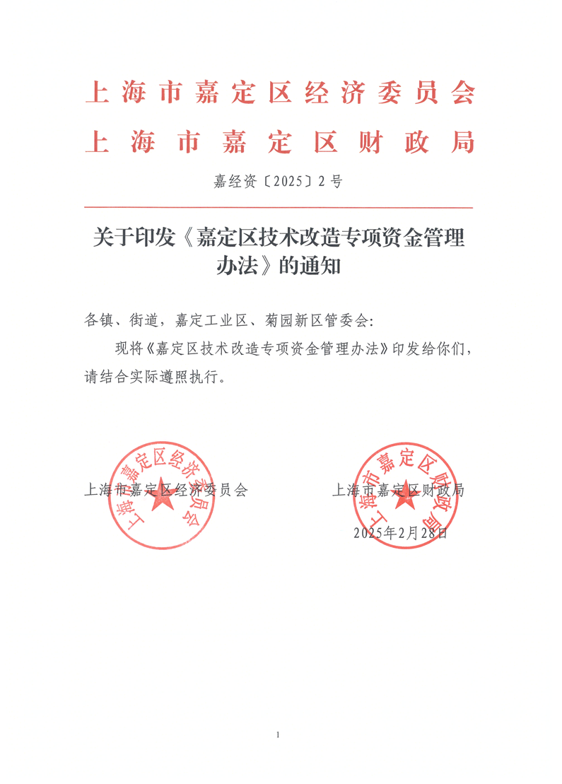 关于印发《嘉定区技术改造专项资金管理办法》的通知