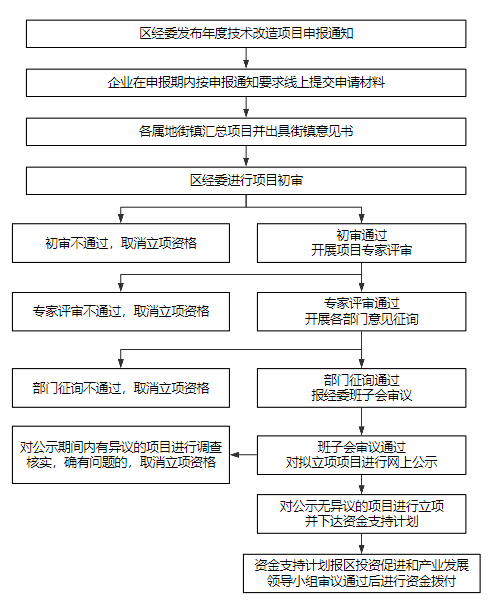 三、项目终审。专家评审合格的项目,由区经委征询区发改委、区科委、区生态环境局等相关部门意见。