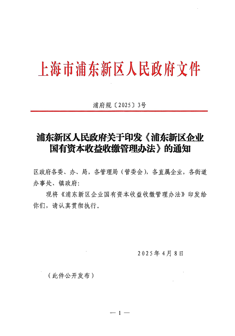 关于印发《浦东新区企业国有资本收益收缴管理办法》的通知