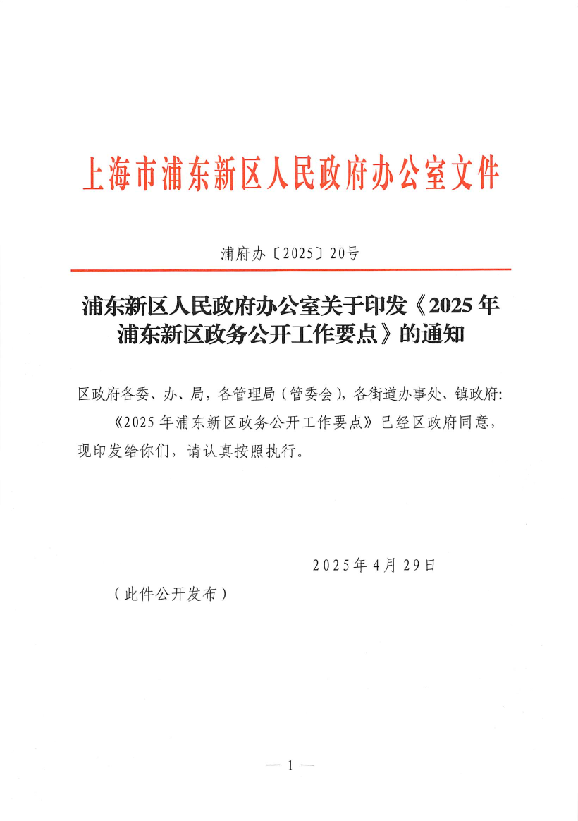 关于印发《2025年浦东新区政务公开工作要点》的通知