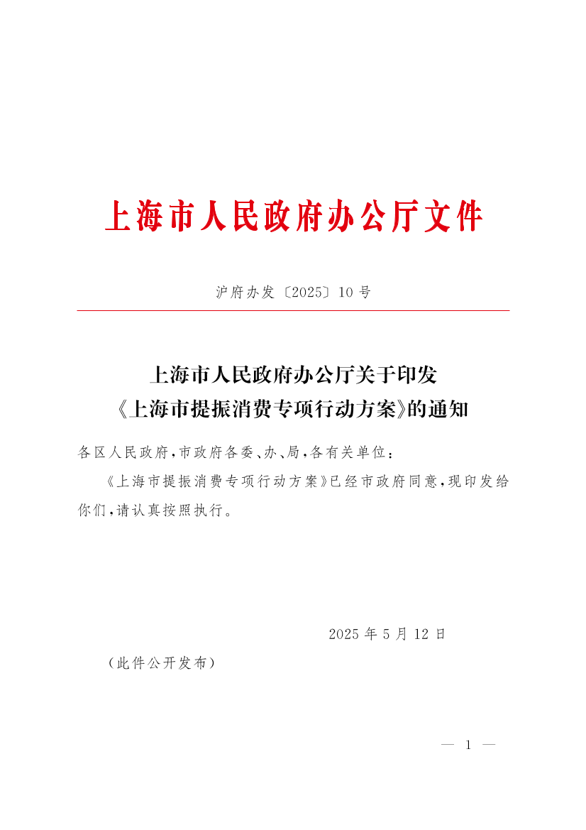 《上海市提振消费专项行动方案》已经市政府同意,现印发给你们,请认真按照执行。