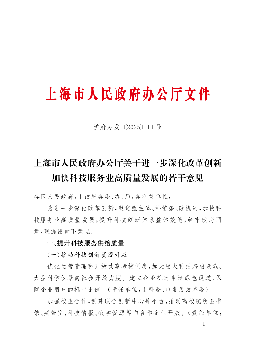 上海市人民政府办公厅关于进一步深化改革创新 加快科技服务业高质量发展的若干意见