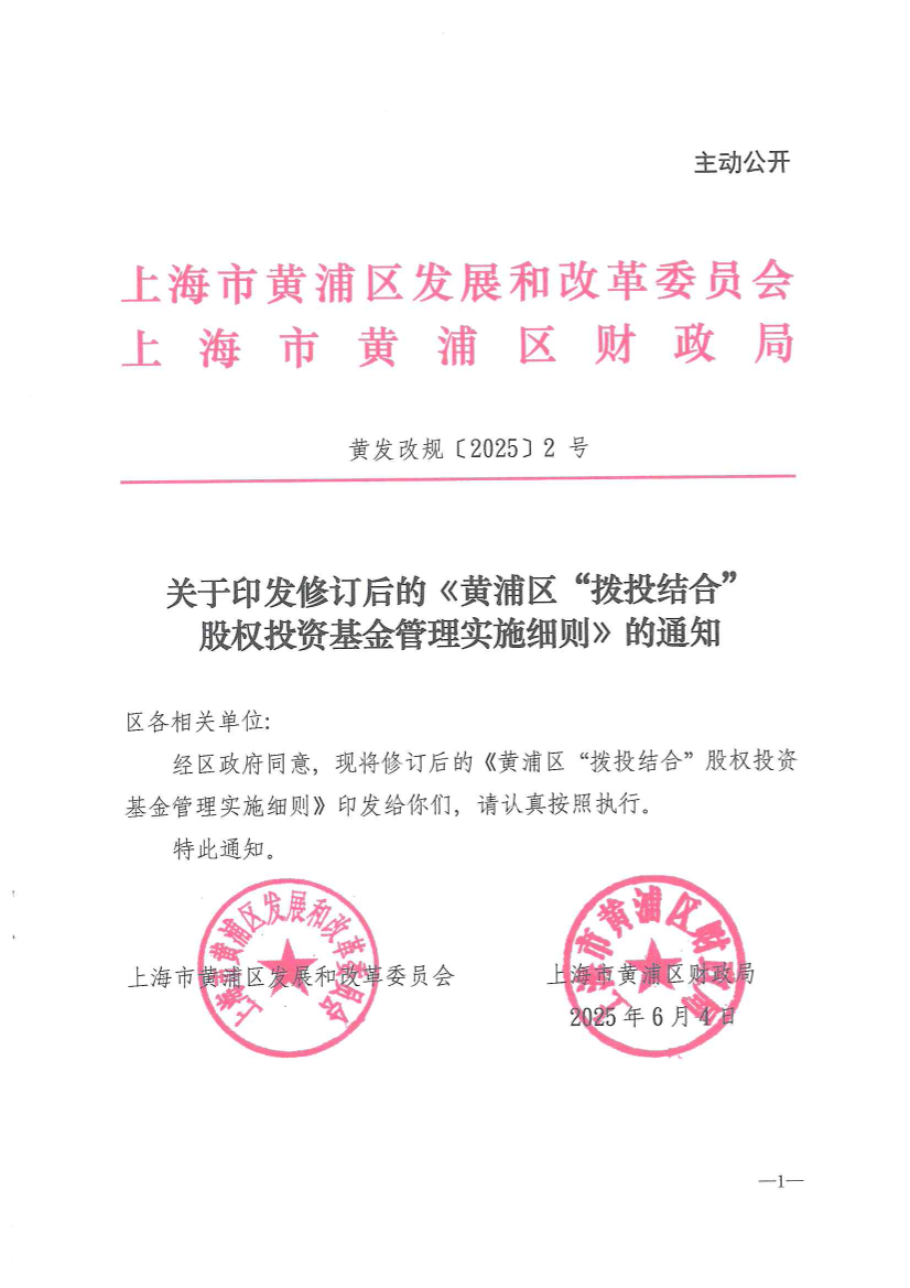 关于印发修订后的《黄浦区“拨投结合”股权投资基金管理实施细则》的通知