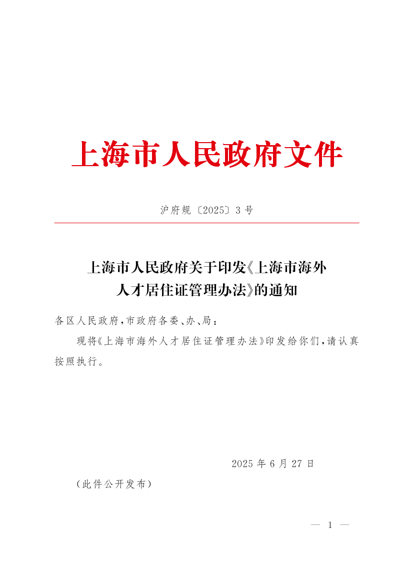 现将《上海市海外人才居住证管理办法》印发给你们,请认真按照执行。