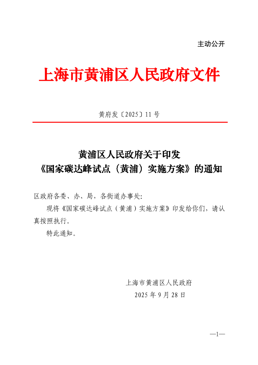 现将《国家碳达峰试点(黄浦)实施方案》印发给你们,请认真按照执行。
