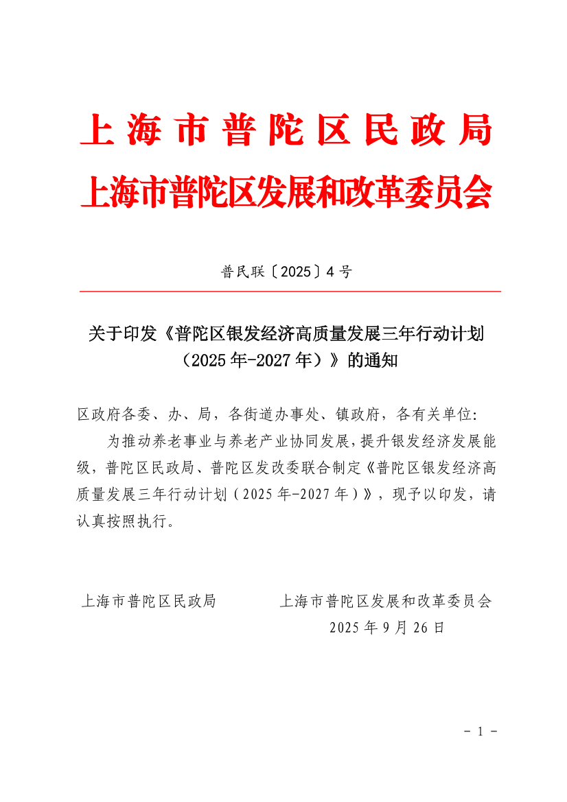 关于印发《普陀区银发经济高质量发展三年行动计划(2025年-2027年)》的通知