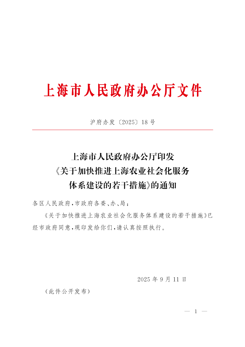 上海市人民政府办公厅印发《关于加快推进上海农业社会化服务体系建设的若干措施》的通知