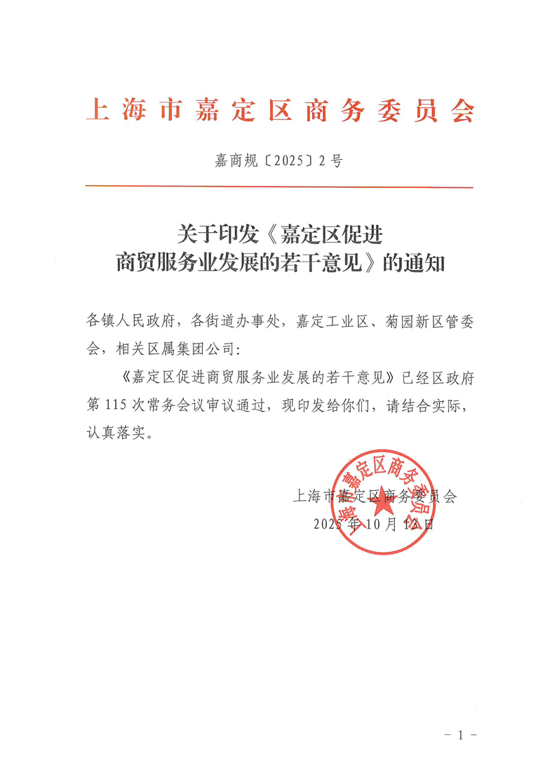 嘉定区促进商贸服务业发展的若干意见