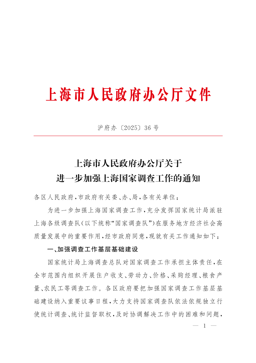 为进一步加强上海国家调查工作,充分发挥国家统计局派驻上海各级调查队(以下统称“国家调查队”)在服务地方经济社会高质量发展中的重要作用,经市政府同意,现就有关工作通知如下: