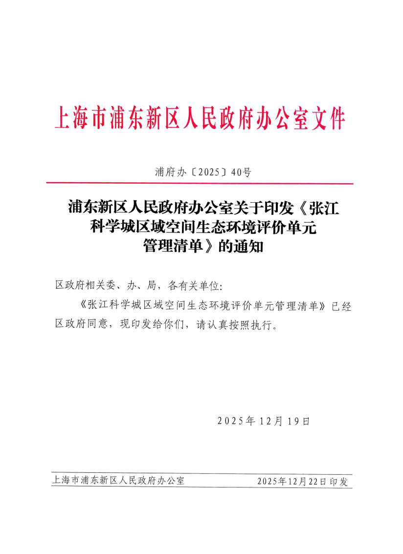 关于印发《张江科学城区域空间生态环境评价单元管理清单》的通知