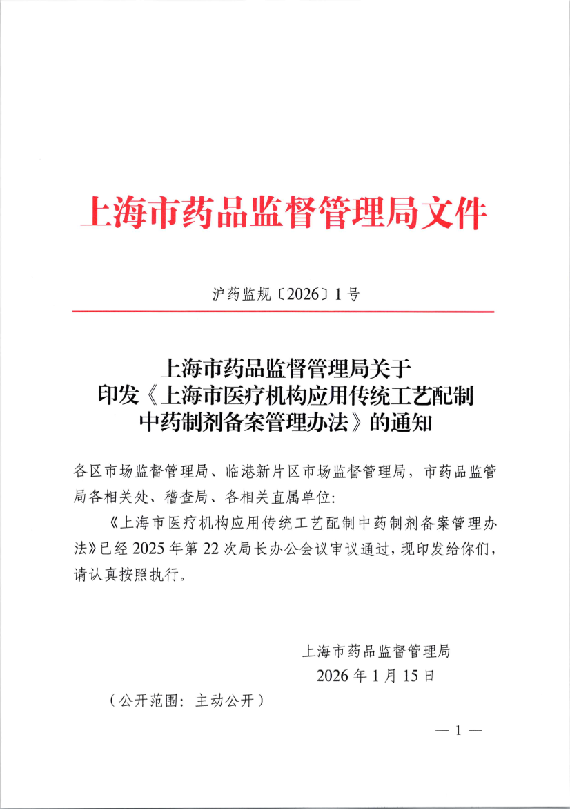 沪药监规〔2026〕1号