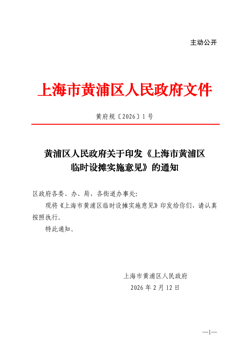 关于印发《上海市黄浦区临时设摊实施意见》的通知
