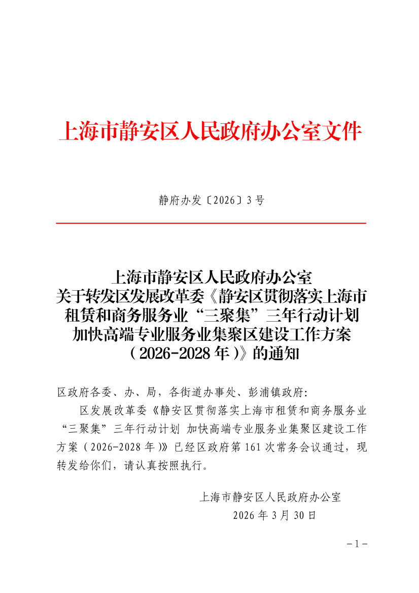 关于转发区发展改革委《静安区贯彻落实上海市租赁和商务服务业“三聚集”三年行动计划 加快高端专业服务业集聚区建设工作方案(2026-2028年)》的通知