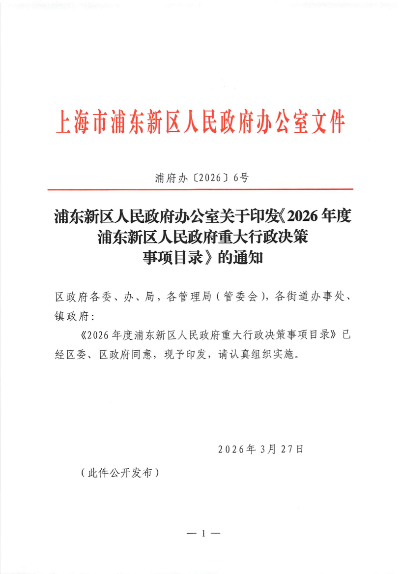 关于印发《2026年度浦东新区人民政府重大行政决策事项目录》的通知