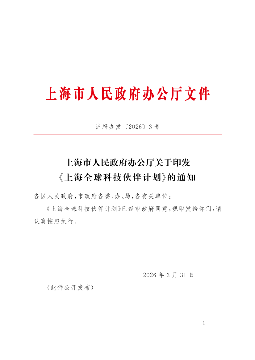 上海市人民政府办公厅关于印发《上海全球科技伙伴计划》的通知