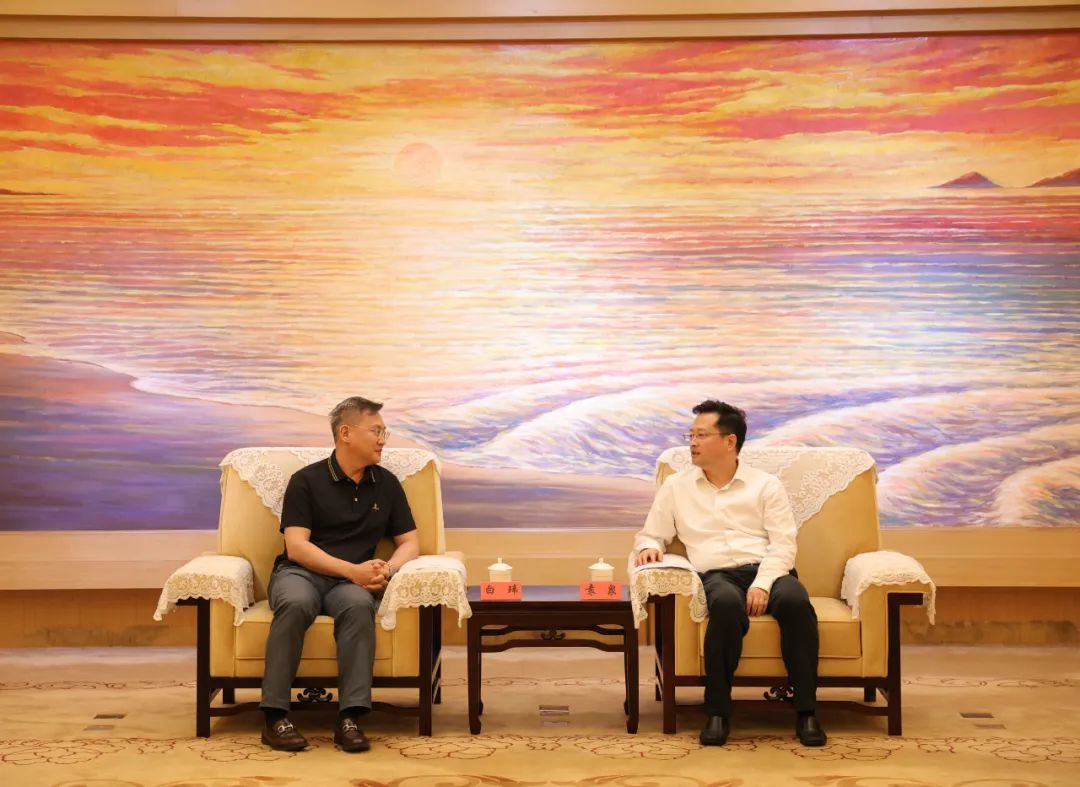7月26日中午,奉贤区委书记袁泉会见盛虹石化产业集团总裁白玮一行,双方就深化务实合作,实现更高水平、更深层次的互利共赢进行了交流。