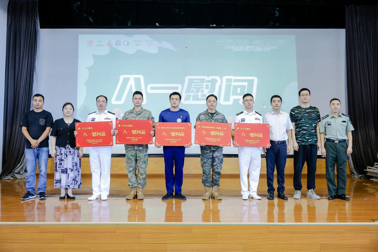 伴随着欢快嘹亮的旋律,由辖区中小学、共建部队官兵、社区民兵、崇敬公益志愿服务联盟成员单位共同组成的8支参赛队身着军装迷彩,以昂扬的精神风貌齐聚体育场内。开幕式上,来自曹杨二中的费扬同学饱含深情地宣读着《致官兵叔叔的一封信》,字字句句都透露着对人民解放军崇高的敬意,随后曹杨新村街道联动辖区双拥会员单位,为共建结对部队赠送“八一慰问礼包”。裁判员、运动员代表也先后上台宣誓,表示将严格遵守比赛规则、弘扬体育道德。