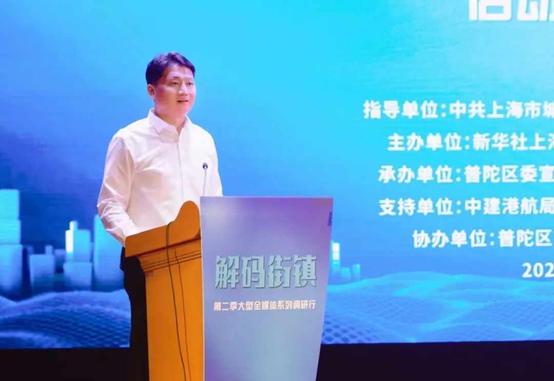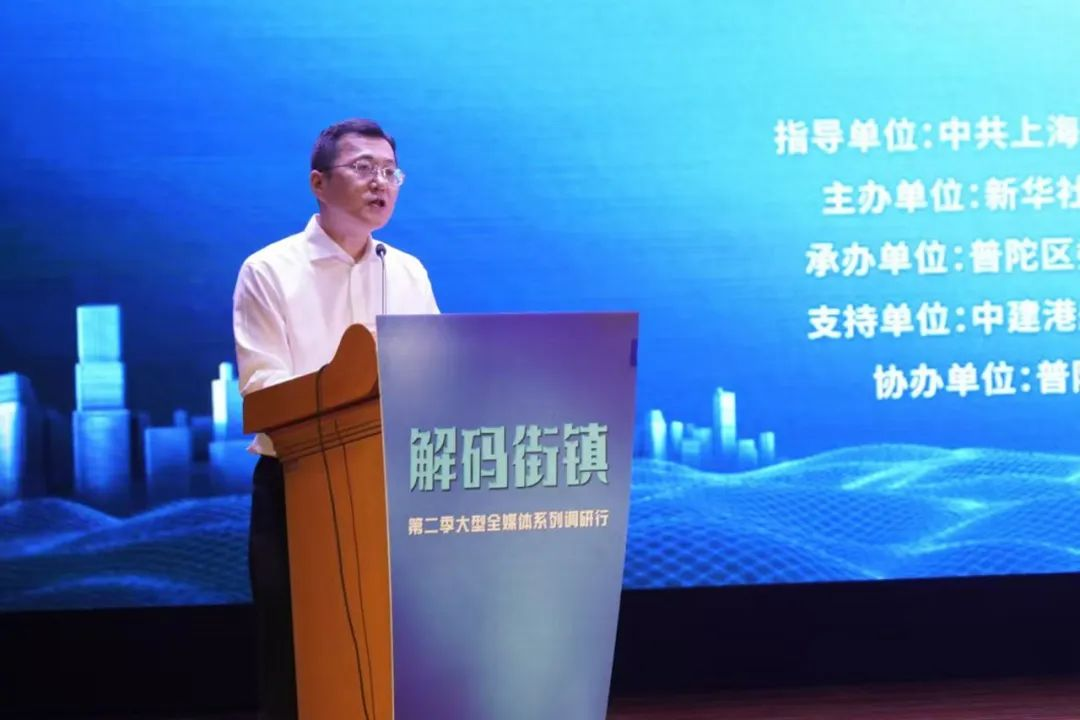 7月31日,“解码街镇”第二季大型全媒体系列调研行启动仪式在普陀举行。上海市建设交通工作党委书记、上海市住房和城乡建设管理委员会主任胡广杰,普陀区委书记姜冬冬,新华社上海分社党组书记姜微,新华社上海分社社长王永前,中建港航局集团有限公司党委书记、董事长陈浩,普陀区委常委、宣传部部长刘东昌,中建港航局集团有限公司党委副书记、工会主席郭导,新华社上海分社党组成员、常务副总编辑杨金志出席活动。