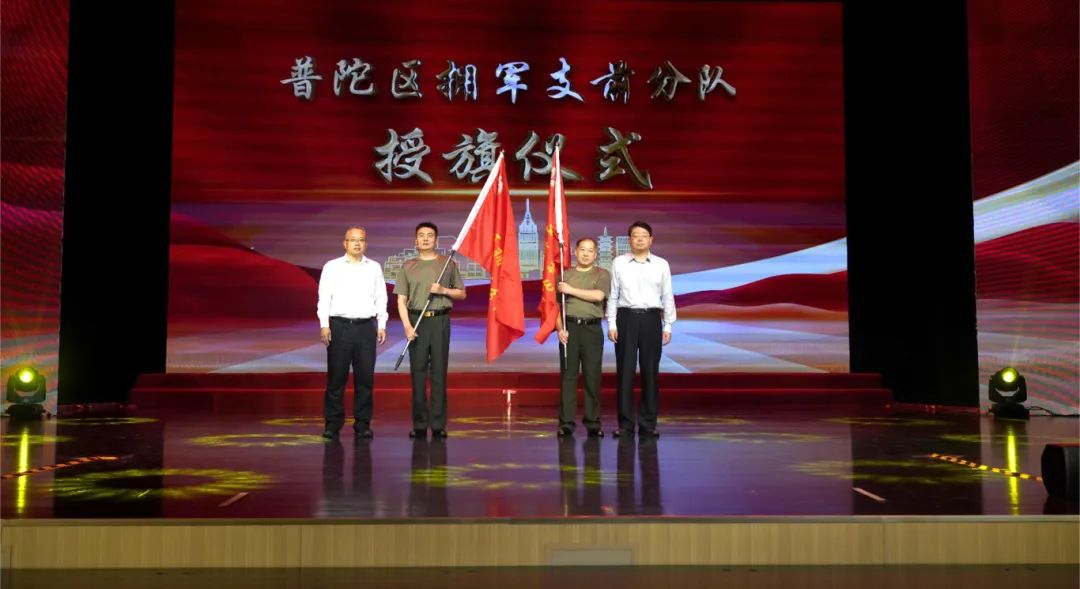 活动上,市区、军地领导分别为武警某部党支部、波克科技集团有限公司党委和上海农商银行普陀支行党委为代表的双拥党建共同体单位进行了授牌;启动了普陀区全民国防教育系列活动;为新成立的普陀区安全警戒分队和普陀区拥军医疗救护分队进行了授旗。