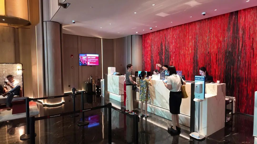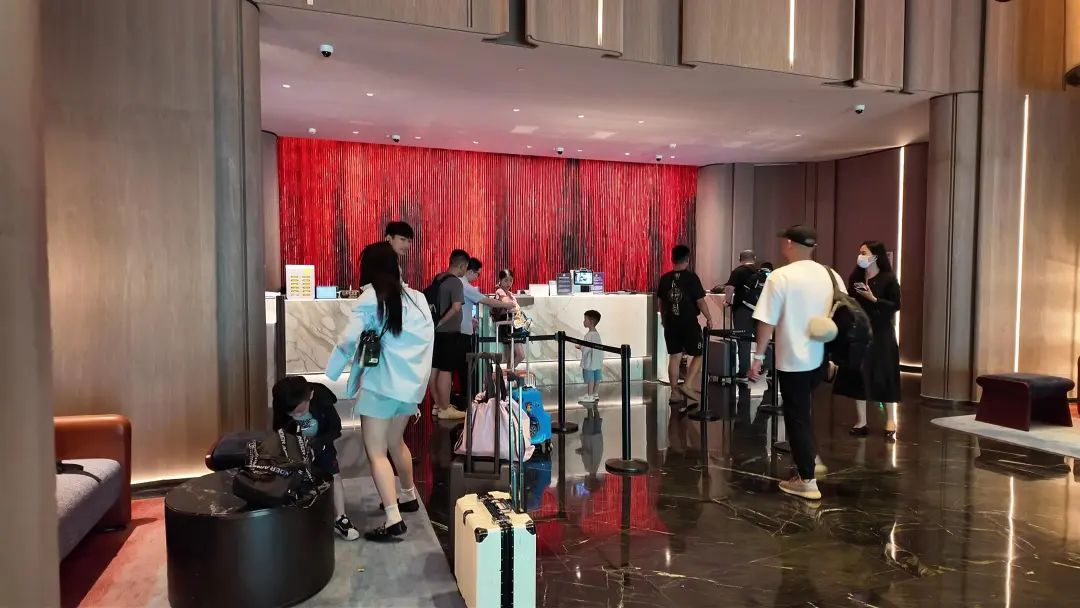 尽管申城连续高温,但游客们的出行热情丝毫未减。前台工作人员忙碌而有序地为每一位客人办理入住手续,同时耐心解答各类咨询,确保大家都能享受到舒适的住宿体验。记者在前台观察发现,来办理入住的游客中既有来酒店“微度假”的本地市民,也有从外地来沪旅游的长途游客。