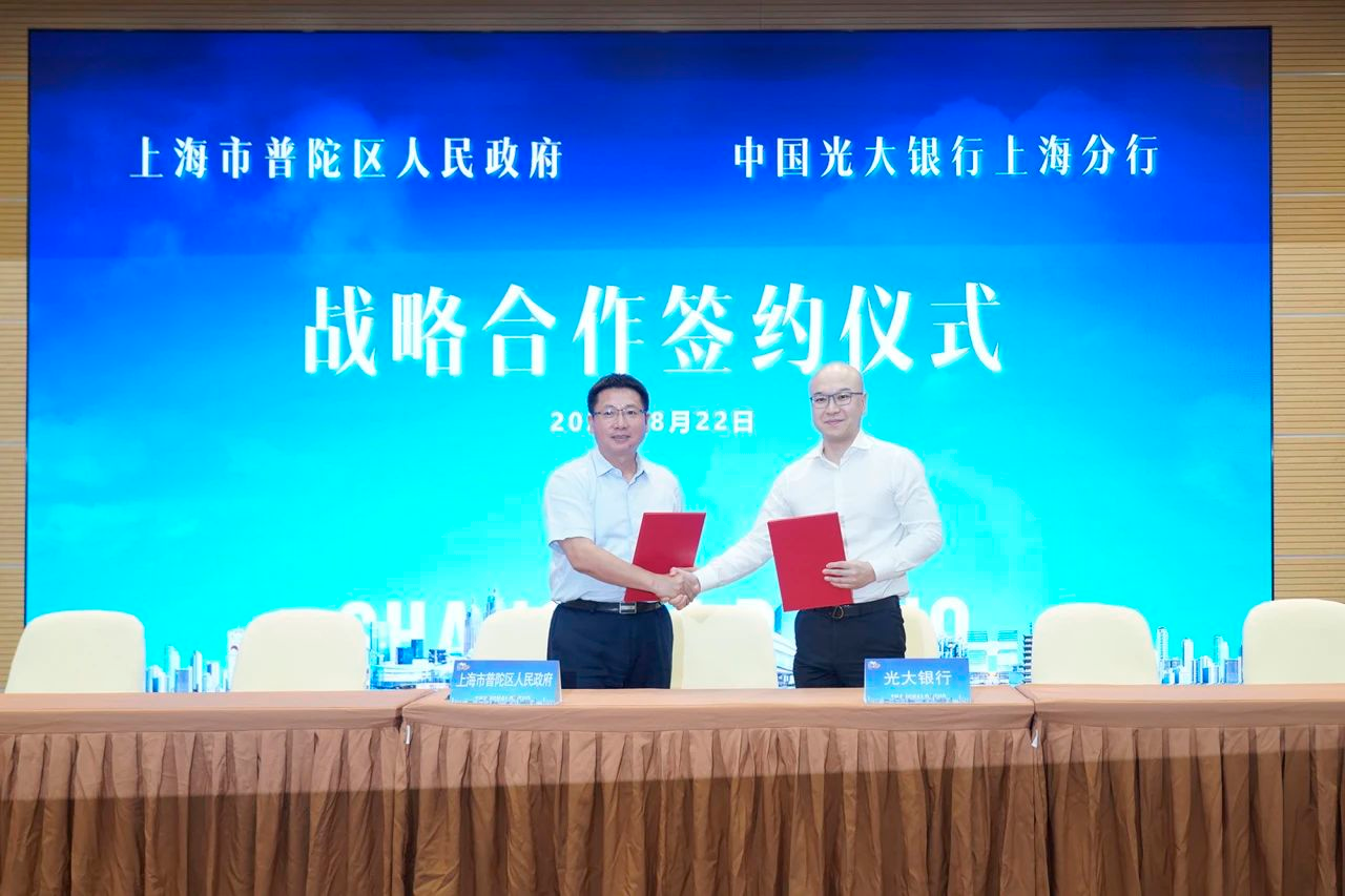 自2020年区政府与光大银行上海分行签署战略合作协议以来,光大银行与普陀区共成长、同繁荣,不仅深度参与普陀区各项经济社会工作,还帮助普陀区引入一批优质企业,为推动普陀区经济高质量发展做出了重要贡献。会上,普陀区人民政府与光大银行上海分行签署了新一轮战略合作协议。