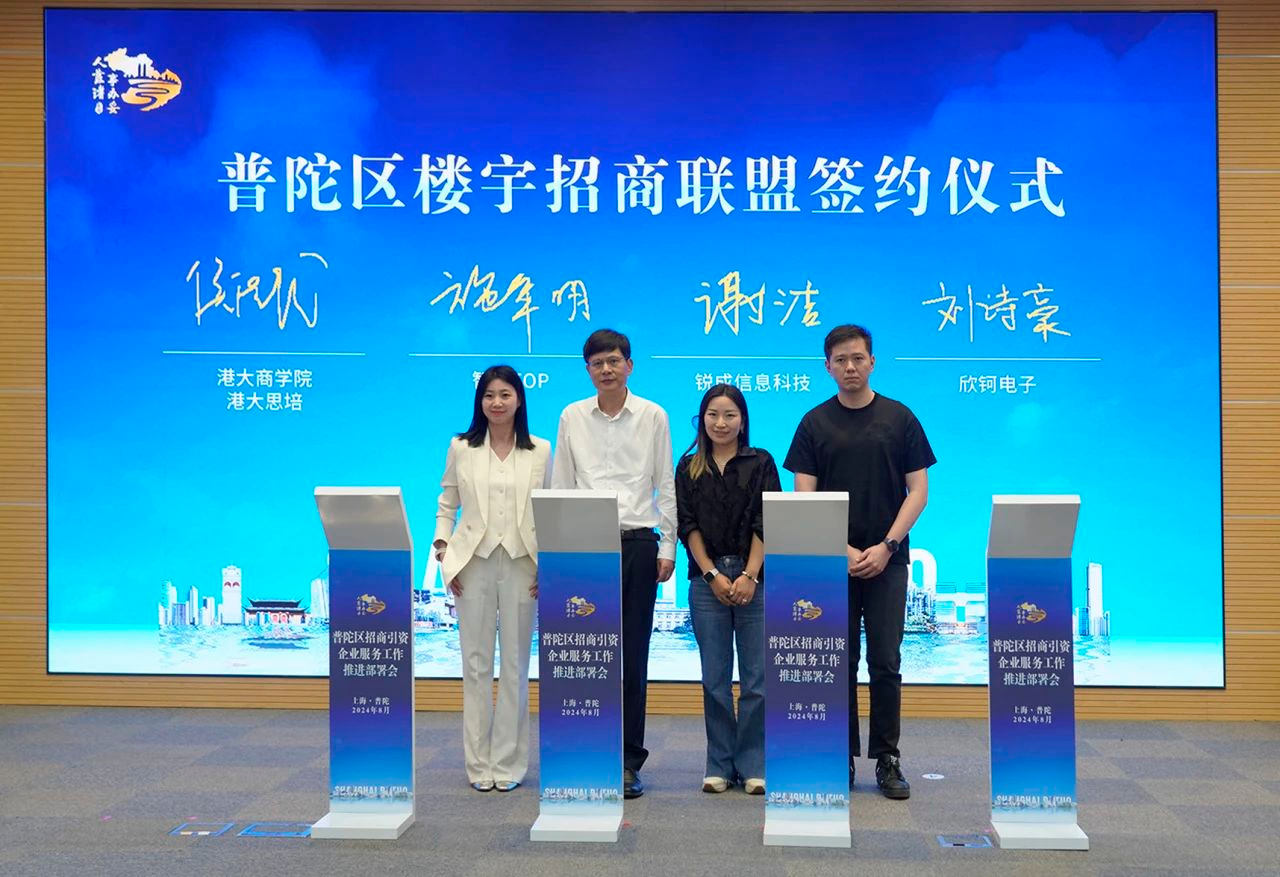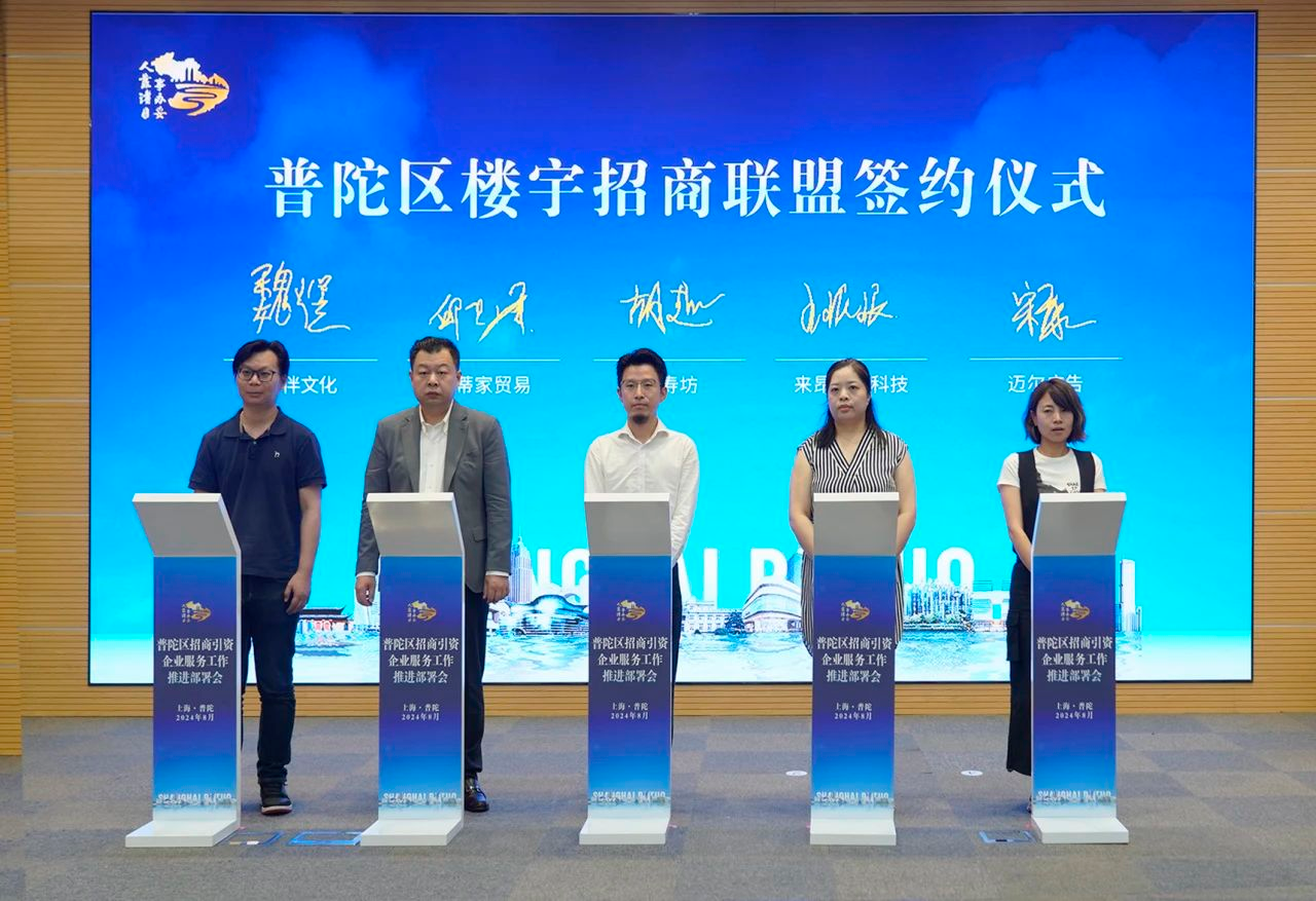 在普陀,上海环球港、信泰中心、中海中心、智创TOP等一组组楼宇群连点成线,勾勒出了上海西北部的城市“天际线”。上半年,中海中心、鸿寿坊、信泰中心被列入全市“最火”写字楼,中海中心出租成交面积位列全市前三。这些楼宇群招引了一批批实力雄厚的好产业、好项目、好企业入驻楼宇载体,推动楼宇经济“拔节生长”,促进区域能级提升跃进。会上举行了普陀区楼宇招商联盟签约仪式。