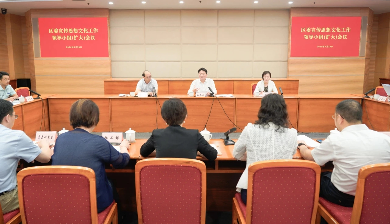 8月29日,区委宣传思想文化工作领导小组(扩大)会议举行。区委书记、区委宣传思想文化工作领导小组组长姜冬冬主持会议并强调,要深入学习贯彻习近平文化思想,坚决贯彻中央、市委各项决策部署,把党管宣传、党管意识形态、党管媒体的要求落实到位,全面提升区域文化软实力,为上海打造习近平文化思想最佳实践地作出更大贡献。