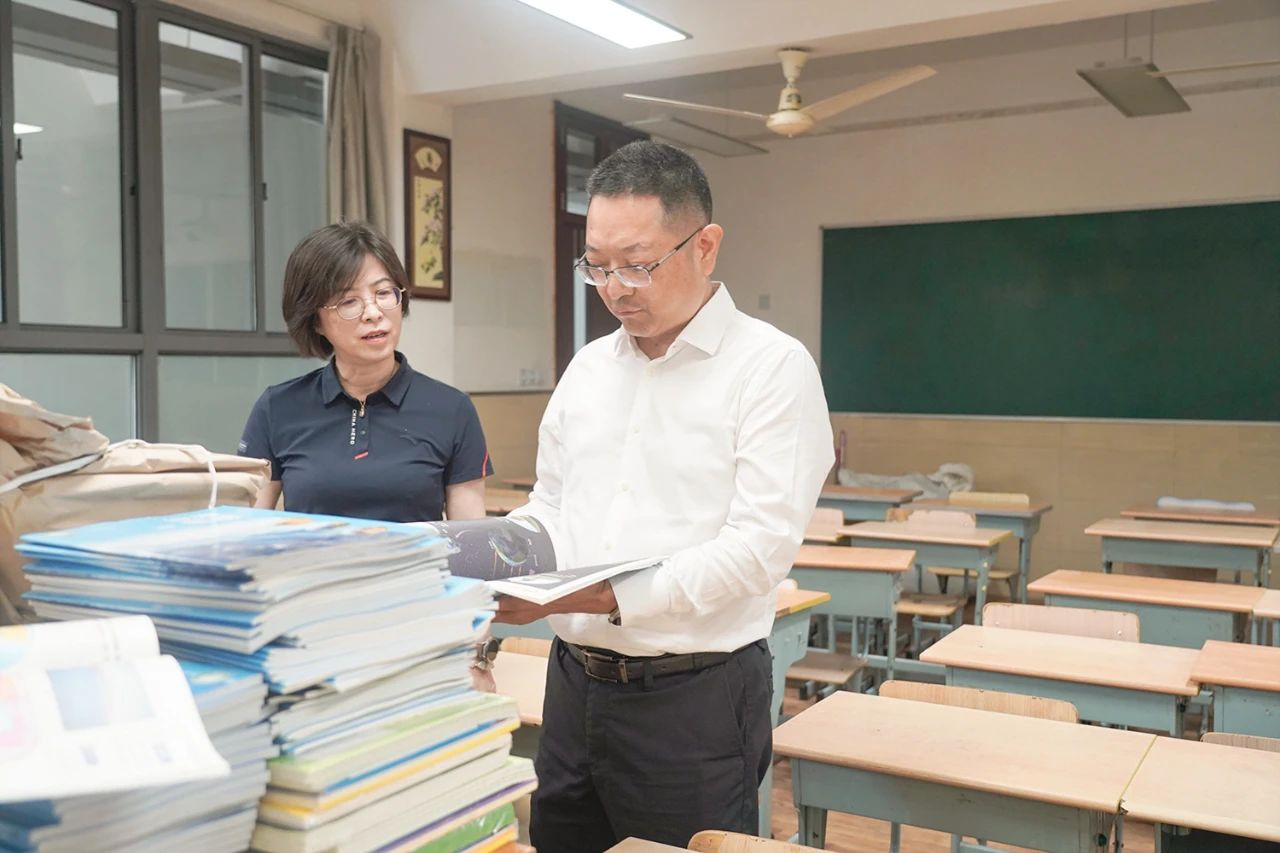 随后,肖文高一行来到梅陇中学,实地调研了学校教学楼、教师办公室、食堂等地。在布置一新的教室里,肖文高细致查看课桌椅等教学设施、翻看书籍教材,他表示,学校和有关职能部门要以高度的责任感,扎实周密做好开学各项准备工作,用心、用情、用力打造更加安全、美好、健康的校园,确保秋季开学平稳有序,让孩子们健康快乐成长。