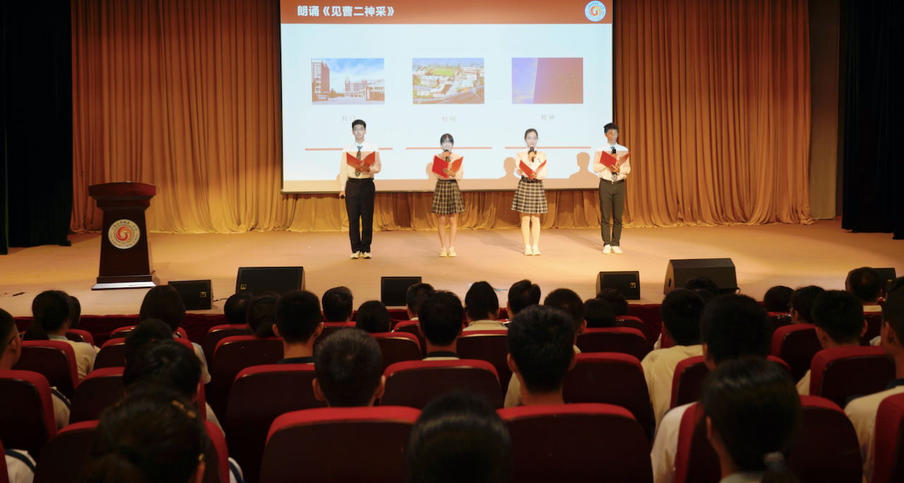 现场,曹杨二中校长周飞致欢迎辞,2024届考取上海交通大学的优秀学长朱羿帅分享了他的成长故事。剧场内青春活力涌动,四位学生代表带来了主题朗诵《见曹二神采》。他们用饱满的情感和铿锵的语调,表达了对学校红色基因、劳模精神、实践品质、特色课程、社团风采的热爱及学校七十年创业历程的赞美。