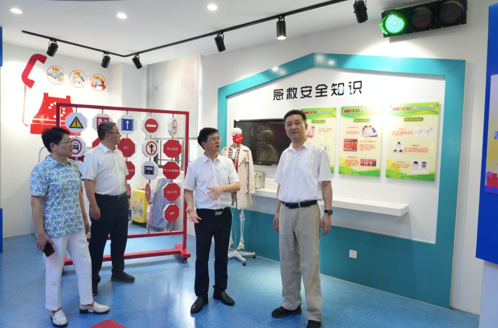 随后,谈上伟来到华东师范大学第四附属中学,与学校师生进行亲切交谈。谈上伟实地察看了教学楼、食堂、心理功能室、图书馆等地,对学校建设、校园安全、教育教学等工作进行细致了解,并对学校新学期的开学相关工作和特色实践给予了充分肯定。