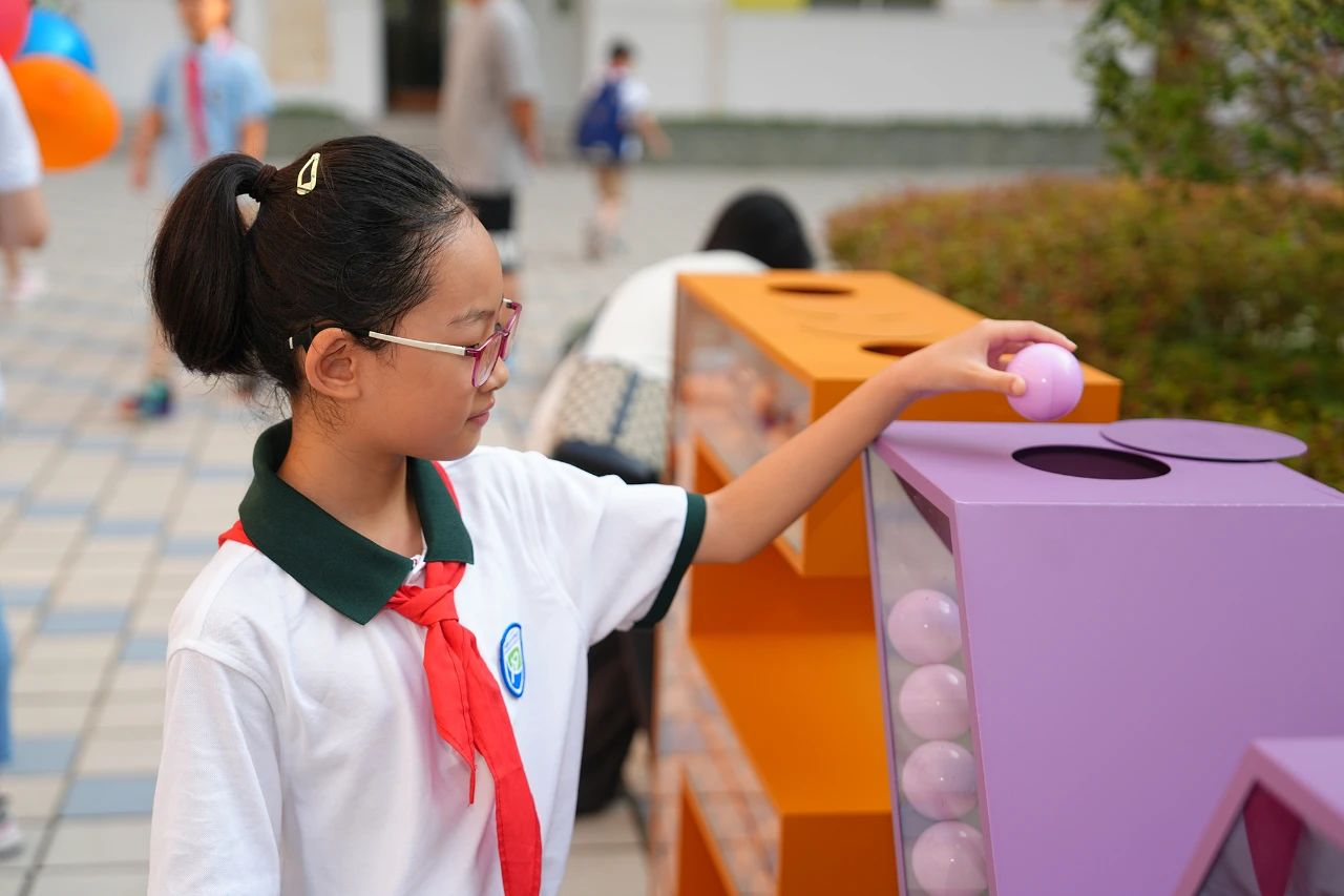 新梦想,共启航,各校以独特的仪式迎接学子们的归来。新普陀小学东校全体师生欣然归来,师生亲密合影,镜头里记录了满心欢愉的新面貌;气球轻舞、击掌共誓,饱含着教师对学子的殷殷期许;队员们的心愿球如彩虹般跃入EXPT时空宝盒中,寄托着全体学子的梦想与祝福。五年级的学生田雨柏对新学期充满期待:“新学期就像站在新的起跑线上,迎接新的比赛一样,我会像运动员一样全力以赴,不怕困难,争取在每门科目上取得更好的成绩。”学生发展中心的张文毅老师说道:“今天看到小朋友们朝气蓬勃的样子,老师们都非常开心。我们希望小朋友们在新的学期里身体棒棒的,学习天天向上,也希望通过一学期的努力,他们开学的小心愿、小目标能够达成。”