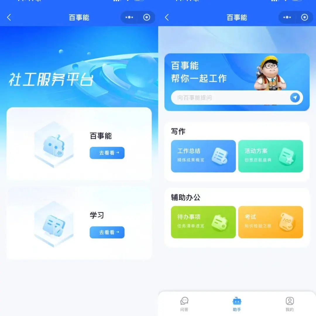 不仅如此,在大模型的开发中还嵌入了“对话问答”的功能设置。比如,通过关键词的模糊提问,大模型可以自动关联出相关答案。“这一功能的设置,一方面是方便社工的日常使用,另一方面则是考虑到大模型的进一步学习完善,通过对话的形式去梳理、摸排社工知识点的盲区,也为大数据的不断学习、优化精准赋能。”鲁瑶举例介绍,下一步,还将进一步打通“百事能AI社工”的数据后台和民生档案基础数据平台,将社工的各项工作记录实现联通、联动,同时与社工的职业技能大赛紧密结合,借助数字技术为社工提升专业技能持续精准赋能。