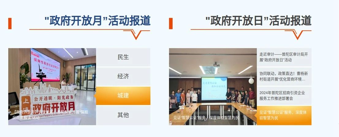 在今年“政府开放月”活动征集意见和实施过程中,线上、线下收获了多条宝贵意见,大家除了表达对普陀区多年政府开放活动的喜爱,也对政府开放活动提出更高要求,今年活动专题改版后,有三个新变化: