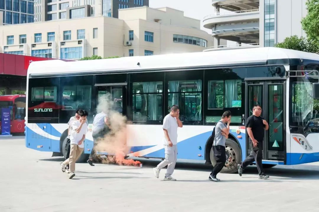 除了车辆运营起火演练,当天还进行了公交车防爆反恐、防止易燃易爆物上车、遇突发情情况道路受阻启动应急绕改道应急预案、早出场发现驾驶员健康异常等多个科目的演练。