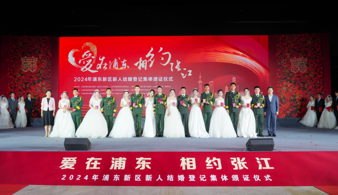 参加此次颁证仪式的24对新人来自浦东现代化建设的各个领域,有的是张江高科技精英、新兴产业的创业者,有的是浦东驻地军人,也有教育、医务工作者,他们动情分享自己的爱情故事,倾情诉说在浦东拼搏奋进的经历以及对家人、对祖国的深厚情感。