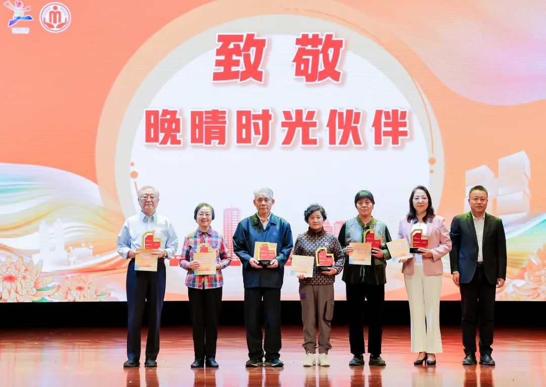 而作为敬老月的主角,银发少年们在梦想舞台上大放异彩,也展现了积极向上的生活态度。为支持鼓励老年人老有所乐、老有所为,现场为坚持发挥余热的“晚晴时光伙伴”们颁发致敬纪念杯,为坚持追梦有为的“梦想家”们颁发梦想勋章,并邀请他们作为“五福临门关爱到家”家庭照护床位服务的首批免费体验者。该项服务聚焦老年人的助餐、助洁、助医、助行、助乐需求,包括三餐有味“享口福”、居家有爱“享清福”、老有所医“享康福”、出行有伴“享行福”、生活有趣“享乐福”等,全部由上海市老年基金会普陀区代表处、上海市养老服务和老龄产业协会普陀区办事处、普陀区养老服务行业惠敬老·靠谱党建联盟共同提供。