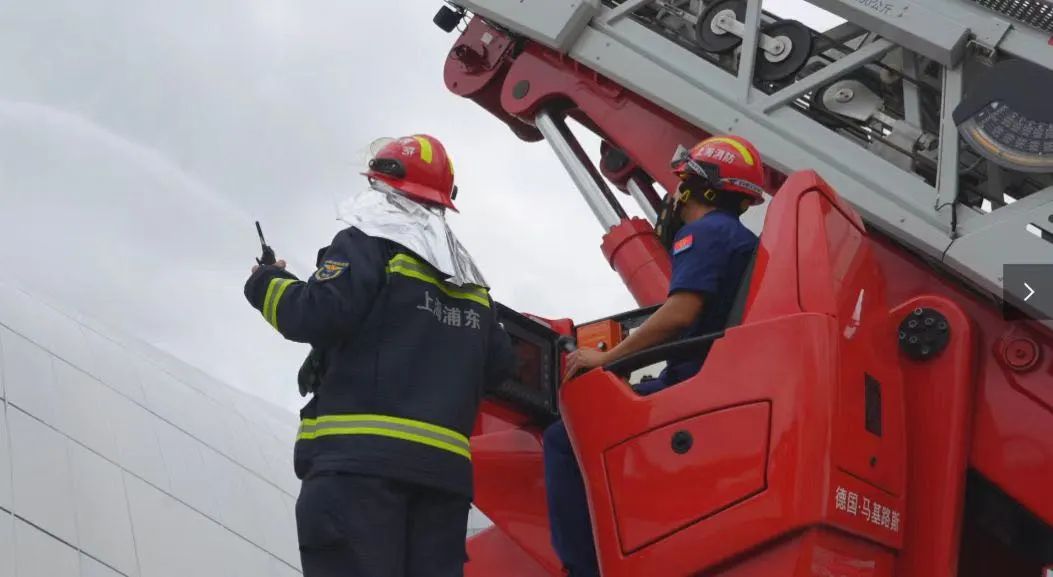 随后,浦东新区消防救援支队全勤指挥部到场,并迅速调集应急、公安、医疗等相关单位应急力量到场协同处置。半个小时后,事故得到完全控制,演练圆满完成。