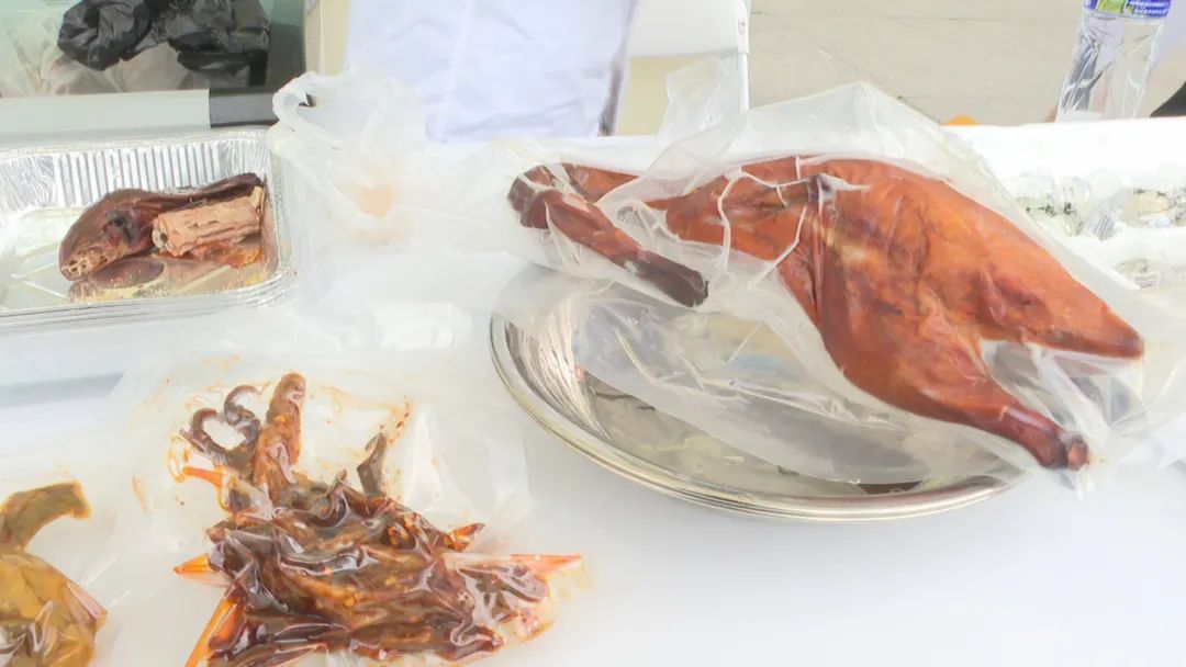 记者在现场看到,东川蜜薯、鲁甸苹果、寻甸牛肉等展台前人头攒动,等市民们纷纷驻足挑选、品尝购买。来自昆明小麻鸭展台前,工作人员正在现场烤制试吃,市民闻香而动、寻味而来。