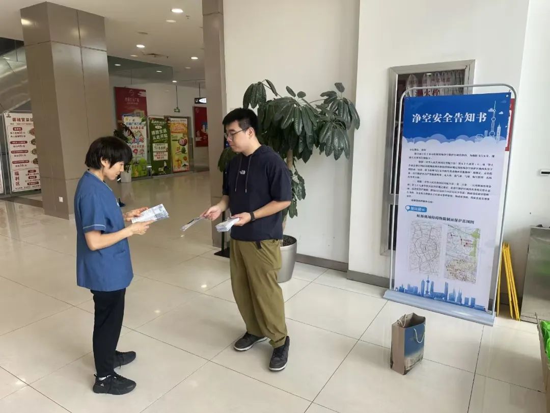 此外,涉及净空保护的各街镇及相关单位也通过多样方式同步开展净空保护宣传。比如:长征镇前期已经自行制作净空安全告知书海报并张贴在各居委会宣传栏上,目前在各点位继续发放净空保护宣传手册,加深长征属地居民对净空保护的印象;长风新村街道在半马苏河沿线重点商场播放净空宣传视频并加大发放净空保护宣传手册频次,扩大净空宣传影响面;桃浦镇在涉及净空保护小区的电子屏幕上播放净空保护宣传视频,并在桃浦重点点位新邻天地广场、白丽生活广场等发放净空保护宣传手册,通过多种宣传方式辐射各类人群;真如镇街道在属地点位通过街道城管共同参与的宣传方式加强与附近居民的沟通,加强净空保护的宣传力度;区绿化市容局、长风集团等单位配合属地街镇做好相关的宣传工作。