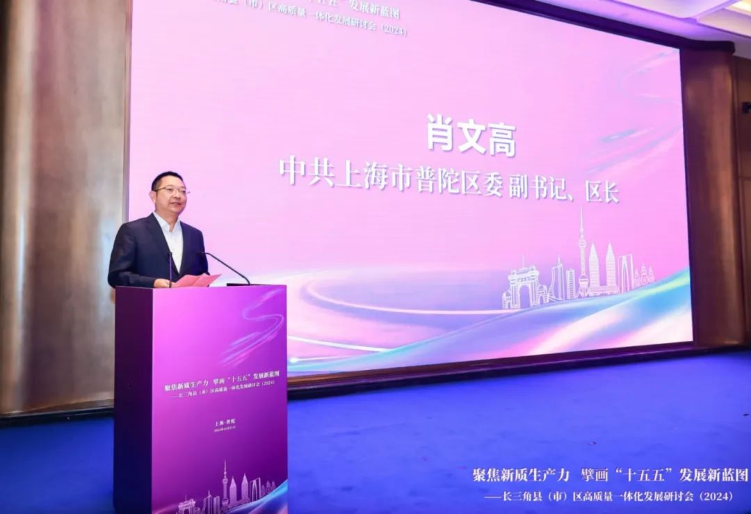 肖文高代表区委区政府对与会嘉宾表示欢迎,对关心支持普陀发展的上级部门和各界朋友表示衷心感谢。他指出,党的二十届三中全会提出,完善实施区域协调发展战略机制,推动长三角等地区更好发挥高质量发展动力源作用。上海是长三角“龙头”城市,普陀是上海的“西大堂”,这里有着蒸蒸日上的发展势头,有着广阔的发展空间,有着扎实的科创和产业基础,有着浓厚的“长三角”基因。将以此次活动为契机,进一步练好科创内功,进一步优化产业布局,进一步加强与长三角各地区的机制协同、项目对接和资源衔接,共同推动长三角县市区高质量一体化发展走向深入。