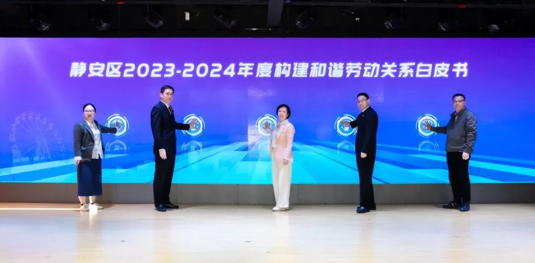 为贯彻落实党的二十大精神,进一步健全劳动领域矛盾纠纷预防化解体系,切实实现好、维护好、发展好广大职工根本利益,2023年,静安建立了“工会+法院+检察院+人社+司法”五方联动工作机制。一年以来,各单位协同配合、同向发力,为构建区域和谐劳动关系积极作为。经过一年的工作实践和经验总结,形成了静安区构建和谐劳动关系白皮书,并在活动现场发布。