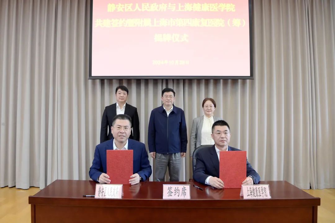 10月28日,静安区人民政府与上海健康医学院共建签约暨附属上海市第四康复医院(筹)揭牌仪式举行。双方签订合作协议,将合作共建上海市第四康复医院和三家附属社区卫生服务中心。