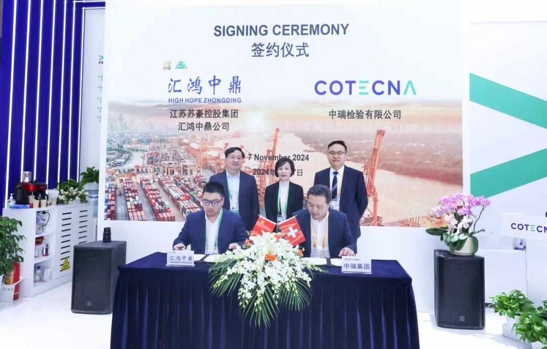 日前,普陀区企业中瑞检验有限公司(Cotecna中国区及北亚区总部)与江苏苏豪控股集团汇鸿中鼎公司举行签约仪式。区委副书记周艳出席。