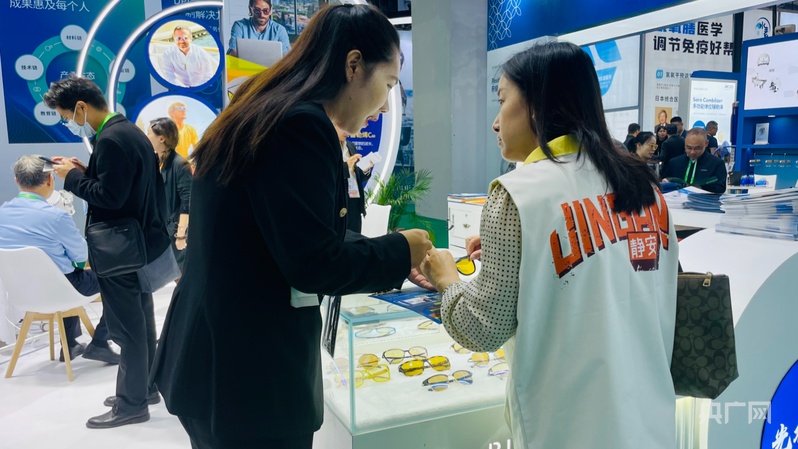 静安招商“小马甲”与展商现场沟通交流(央广网发 上海市静安区供图)